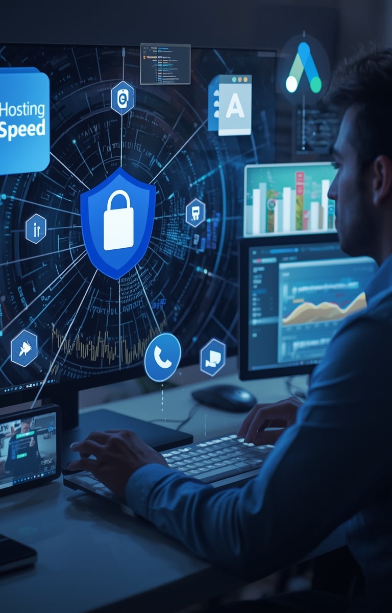 Para que tu presencia digital sea completa y confiable, ofrecemos hosting rápido y seguro, con garantía de estabilidad y protección de datos, asegurando que tu web y apps funcionen sin interrupciones y con máxima velocidad.